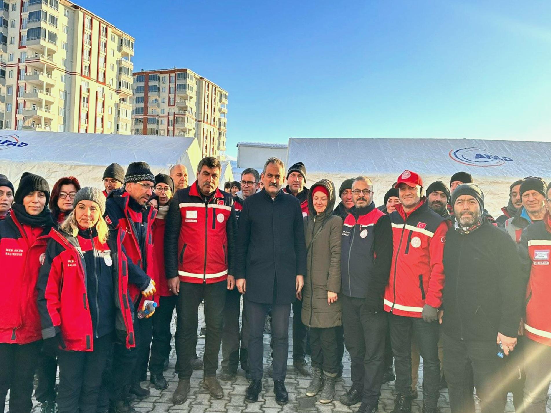 Milli Eğitim Bakanı Mahmut Özer ülke genelinde eğitim öğretime 20 Şubat Pazartesi gününe kadar ara verildiğini açıkladı. Deprem bölgelerinde incelemelerde bulunan Bakan Mahmut Özer, Malatya’dan açıklamalarda bulundu. Milli Eğitim Bakanlığı’na bağlı uygulama otellerinde, öğretmenevlerinde, okullarda ve diğer tüm konaklama imkanı bulunan her yerde yaklaşık 450 bin vatandaşa ev sahipliği yaptıklarını söyledi. Bakan Özer, “10 ilimizdeki sıcak yemekle ilgili de her türlü destekleri veriyoruz. Yaklaşık 800 bin kişilik sıcak yemek hizmetini, inşallah, 1 milyona çıkaracağız. 400 bin kumanya dağıtıyoruz, yine günlük meslek liselerinde yaklaşık 700 bin ekmek üretiyoruz. Bunu da inşallah, hafta sonuna kadar bir milyona çıkaracağız. Tüm Türkiye’deki gönüllü öğretmenlerimiz, burada, on binlerce öğretmenimiz sahada. Bu süreci aksatmamak için 71 ilde 13 Şubat’a kadar olan tatili bir hafta daha uzatıyoruz. Yani 20 Şubat itibarıyla 71 ilde eğitim öğretime başlanacak” açıklamasında bulundu. (BSHA-Bilim Ve Sağlık Haber Ajansı)