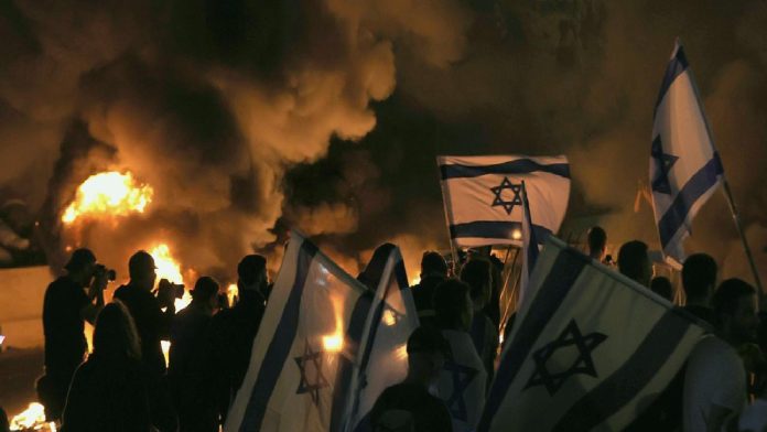 Gazze’deki İsrailli esirlerin yakınları, Tel Aviv’in ana arteri Ayalon Otoyolu’nu tek istikametli olarak bir mühlet kapatarak burada ateş yaktı.